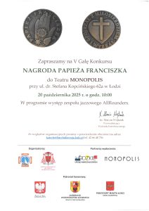 Już od pięciu lat Archidiecezja Łódzka oraz Wydział Katechetyczny organizuje Galę Konkursową Nagrody Papieża Franciszka. Tegoroczna Gala odbędzie się 20 października o godz. 10:00 w Teatrze Monopolis w Łodzi, przy ul. Kopcińskiego 62a. Podczas Gali zostanie przedstawiona działalność uczniów w trzech obszarach życia kościelnego: charytatywnej, ekumenicznej oraz ewangelizacyjnej.